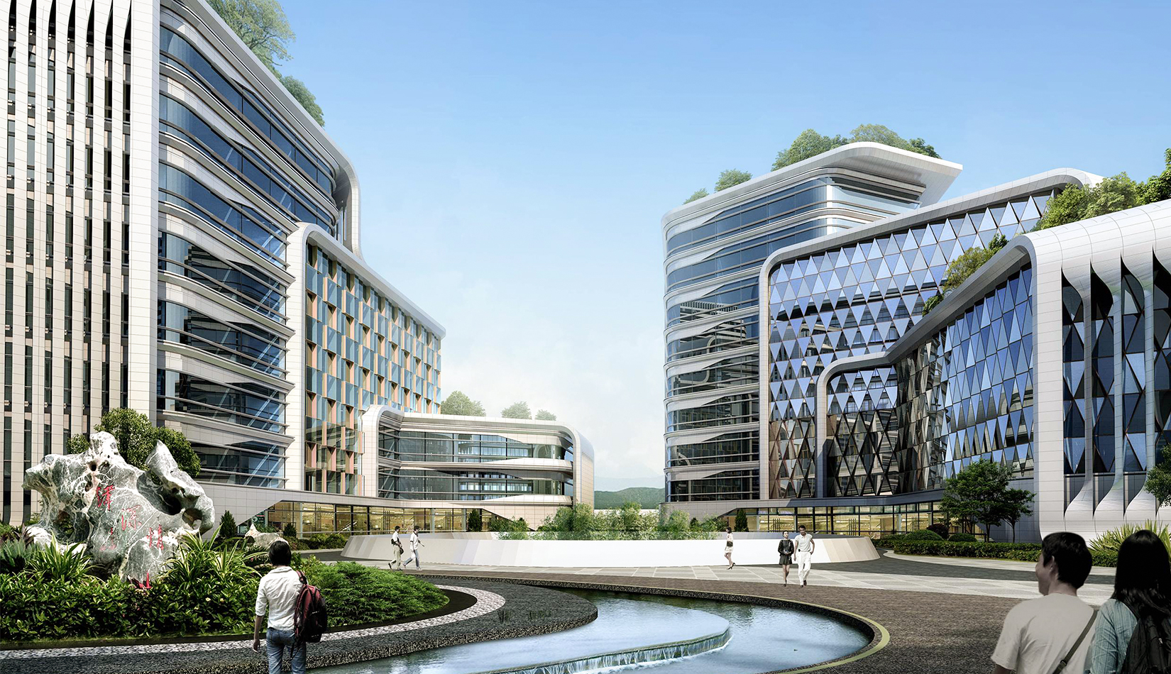 整個園區(qū)內,散落著五個獨特的建筑單體,分別以不同的顏色代表五大洲建筑形象,與五環(huán)顏色相匹配。象征著院士們來自于五湖四海,匯聚在院士港這個港灣。