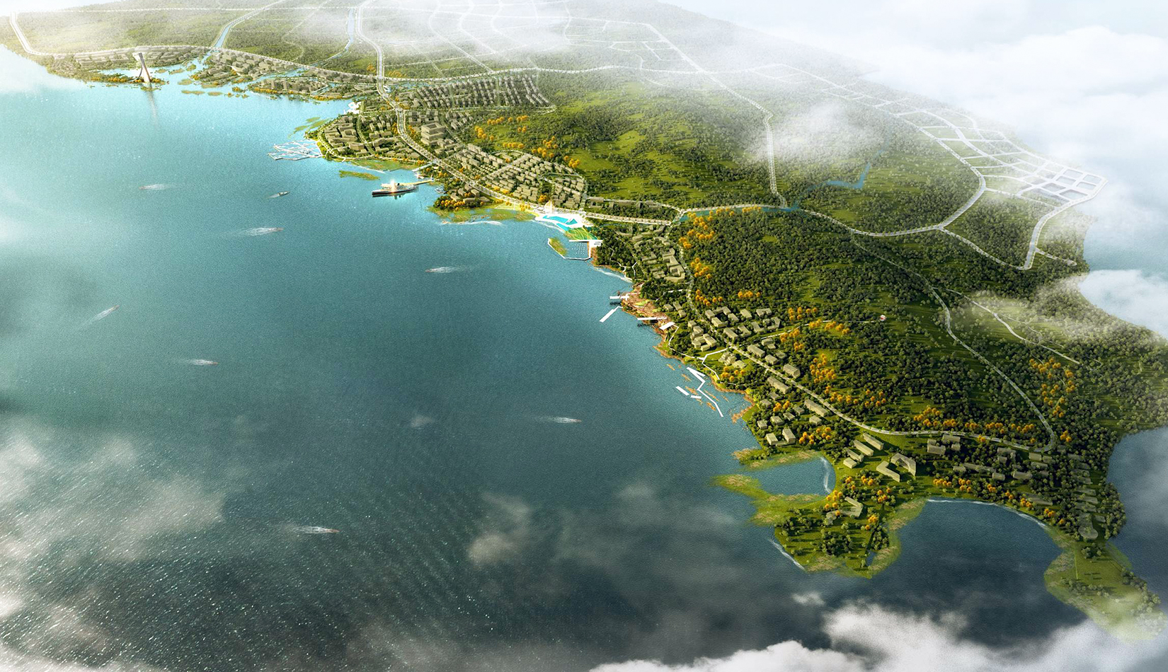 藍色硅谷在空間結(jié)構(gòu)上共分為五個主要組團:遠期發(fā)展組團、居住休閑組團、旅游度假組團、核心商業(yè)組團及科技研發(fā)組團。