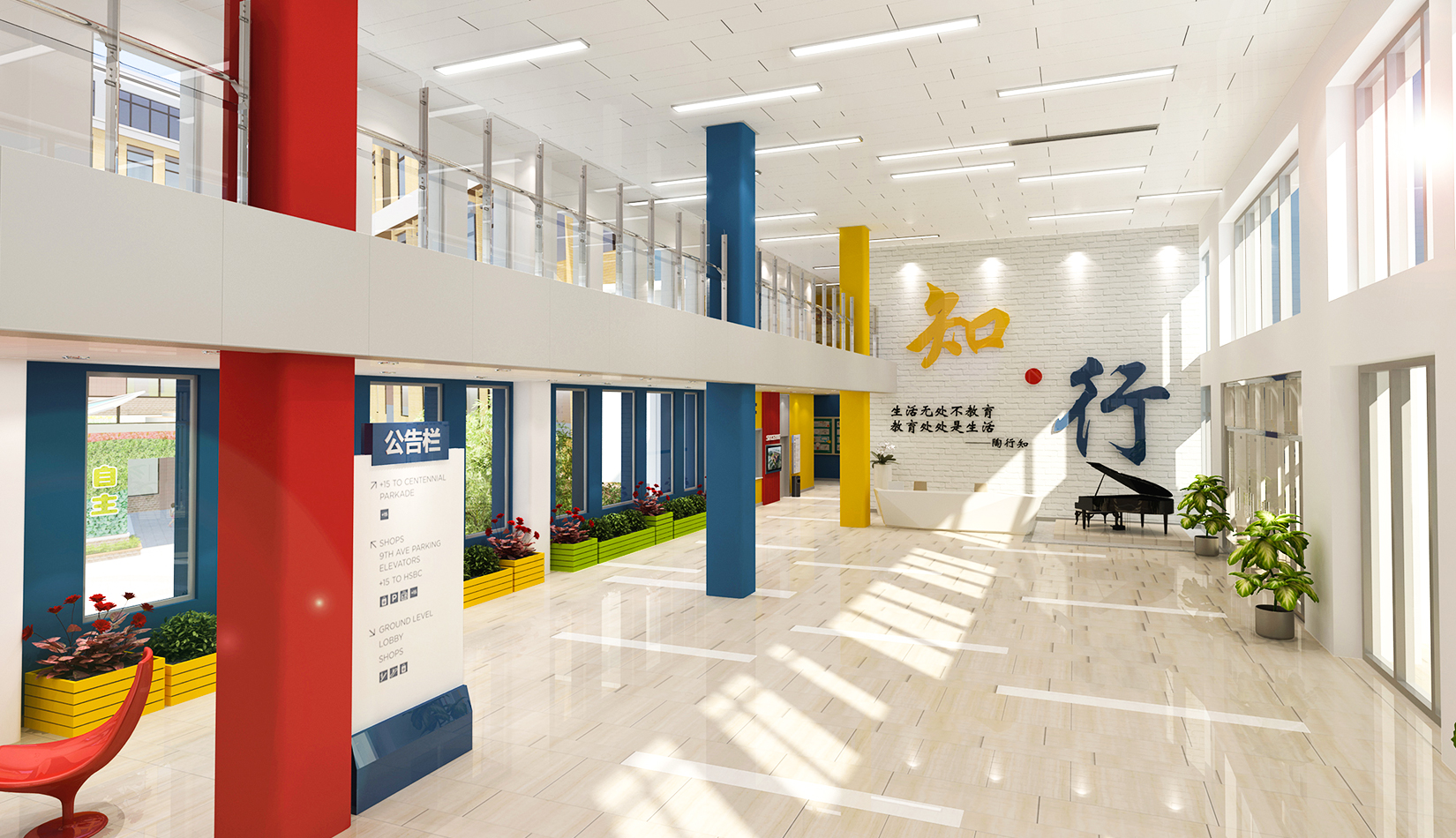設(shè)計追求空間設(shè)計的前瞻性,深入揣摩材質(zhì)、工藝與造型之間的關(guān)系,力圖體現(xiàn)現(xiàn)代化小學(xué)空間輪廓;設(shè)計堅持以“人”為本的校訓(xùn),強調(diào)人性化設(shè)計,因此注重生態(tài)、綠色、節(jié)能、環(huán)保、文化空間功能,輔以材質(zhì)、色彩的表達(dá),為寧夏路小學(xué)營造出了人性的、功能的、標(biāo)志化效果,為孩子創(chuàng)造-一個良好的視覺環(huán)境和心理健康發(fā)展的氛圍。