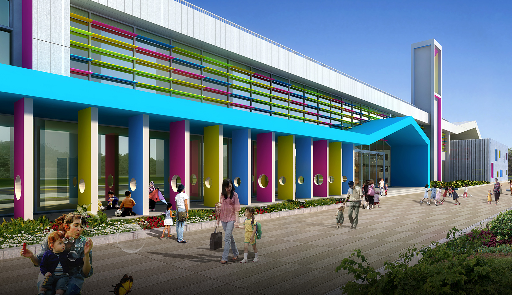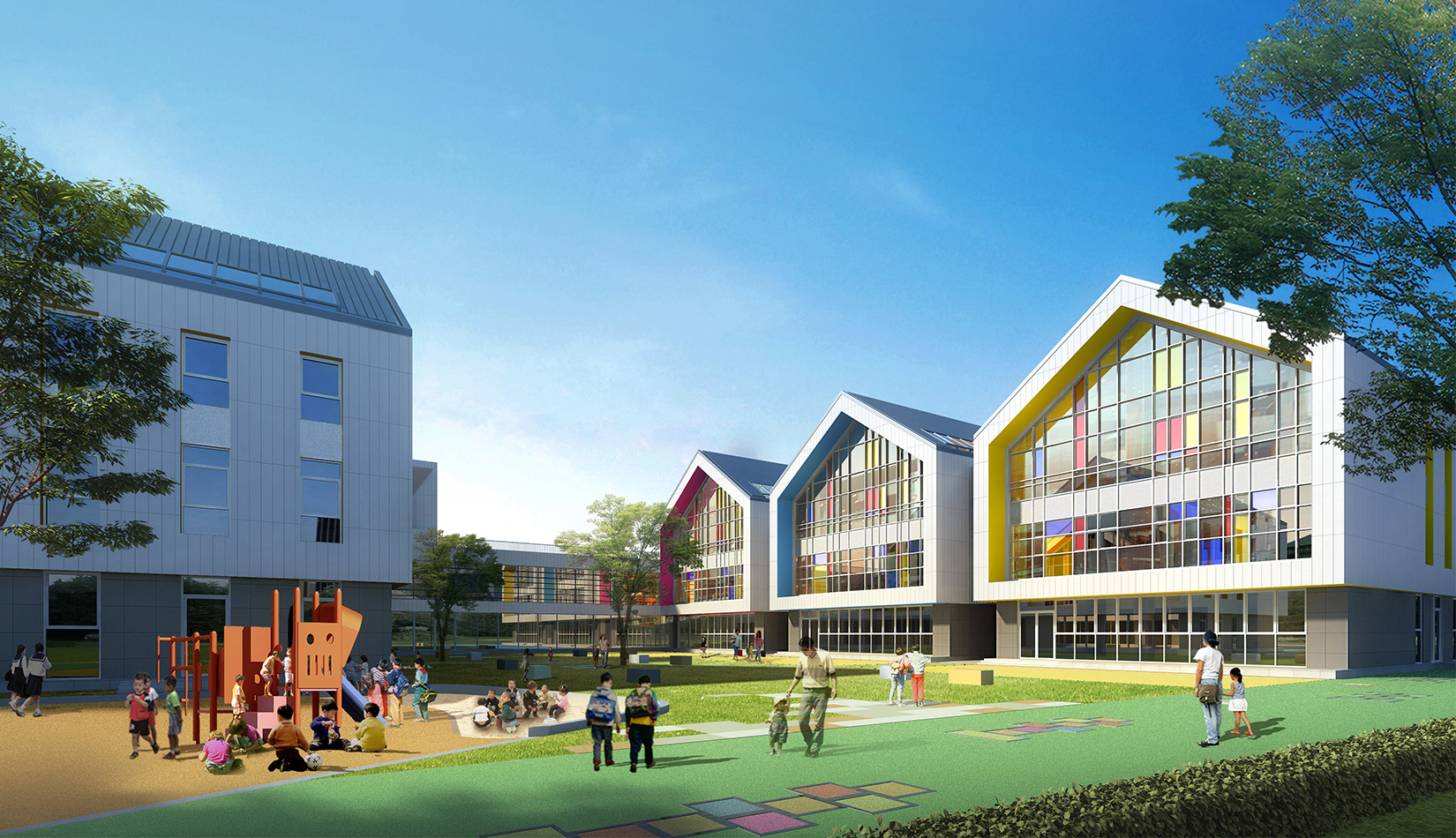 幼兒園作為兒童開始社交活動、培養(yǎng)社交能力的起始點,給孩子帶來的第一感受是陌生的、復(fù)雜的,而營造像“家”一樣自然舒適的環(huán)境有利于減少這樣的陌生感與距離感。本案設(shè)計中,通過將“坡屋頂小盒子”的家的形象代入幼兒單元的形象設(shè)計,來營造這樣一種氛圍,讓幼兒園成為孩子們的第二個家。