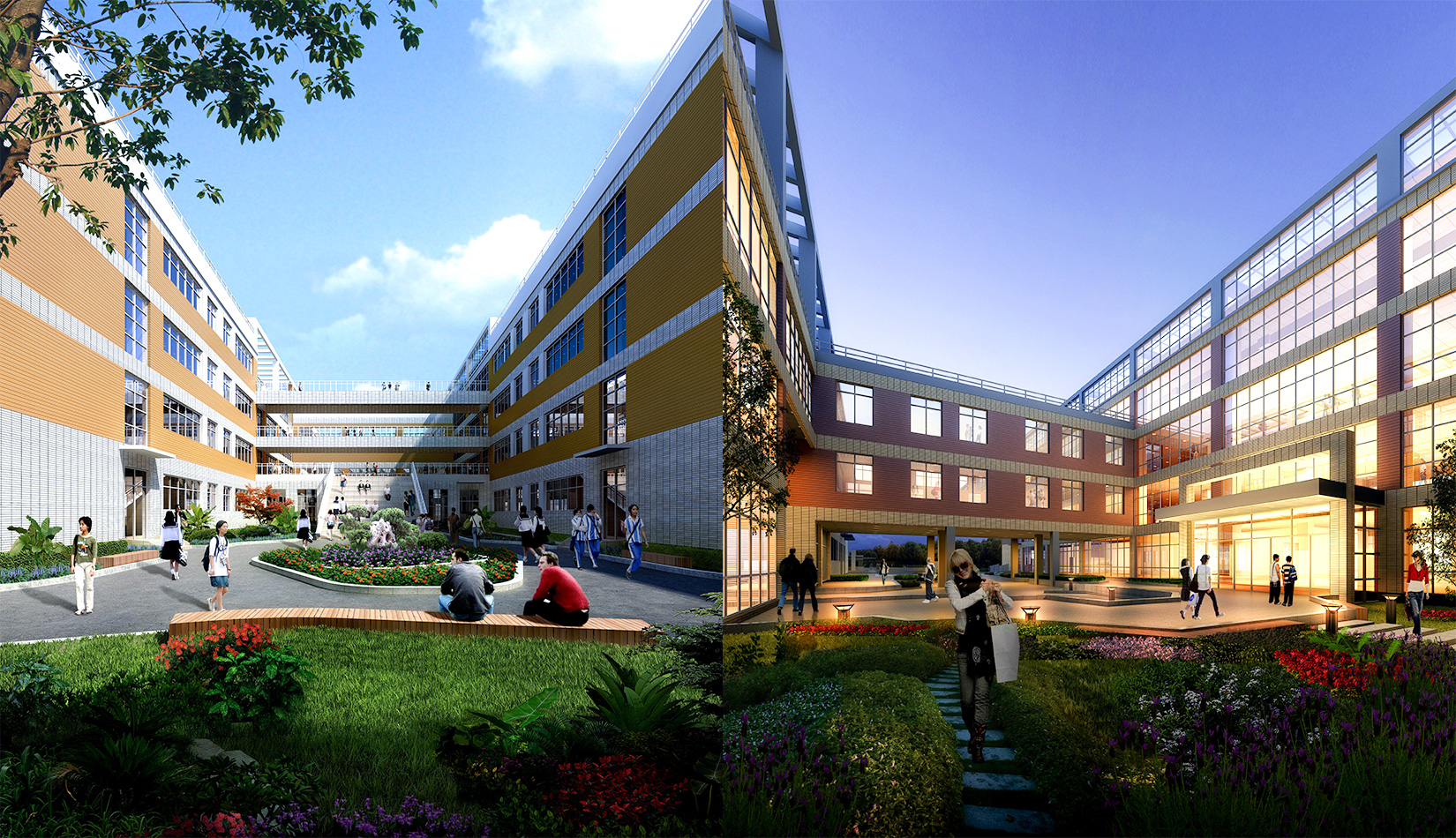 通過對(duì)功能、流線的科學(xué)整合與單體建筑的精心設(shè)計(jì),運(yùn)用現(xiàn)代的建筑語言營(yíng)造富有強(qiáng)烈時(shí)代感的校園環(huán)境,并不斷探索開放、和諧、人文的校園設(shè)計(jì)策略,使建筑體現(xiàn)時(shí)代特征。