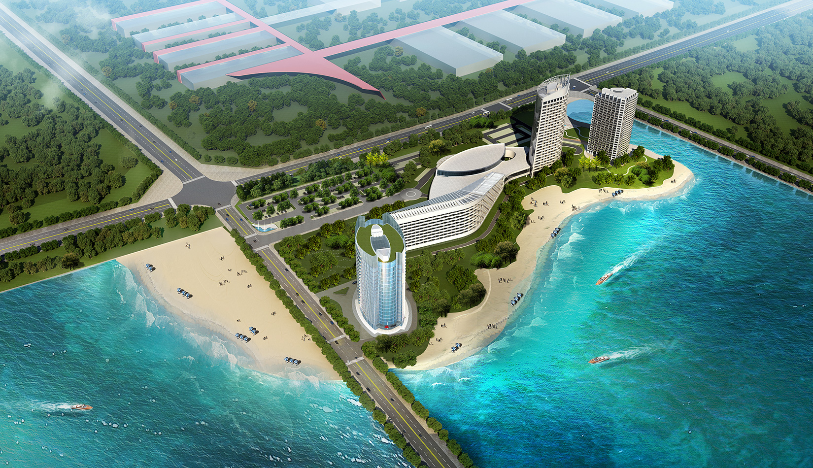 項目充分考慮酒店一期建筑及其對空間、道路、周邊環(huán)境的影響,盡量將二期建筑順勢布置,與一期形成完整的有機整體;將局促且形狀不規(guī)則的用地進行合理組織,使建筑、道路、景觀得到恰當?shù)陌才?;與一期建筑相對獨立,又能夠共享景觀、道路等資源,達到使用上的便捷、舒適;在滿足建筑功能及使用的前提下,盡量減少建筑的高度、長度、突出一期的主導地位,是對整個環(huán)境的補充和完善,提升土地價值和環(huán)境品質(zhì)。